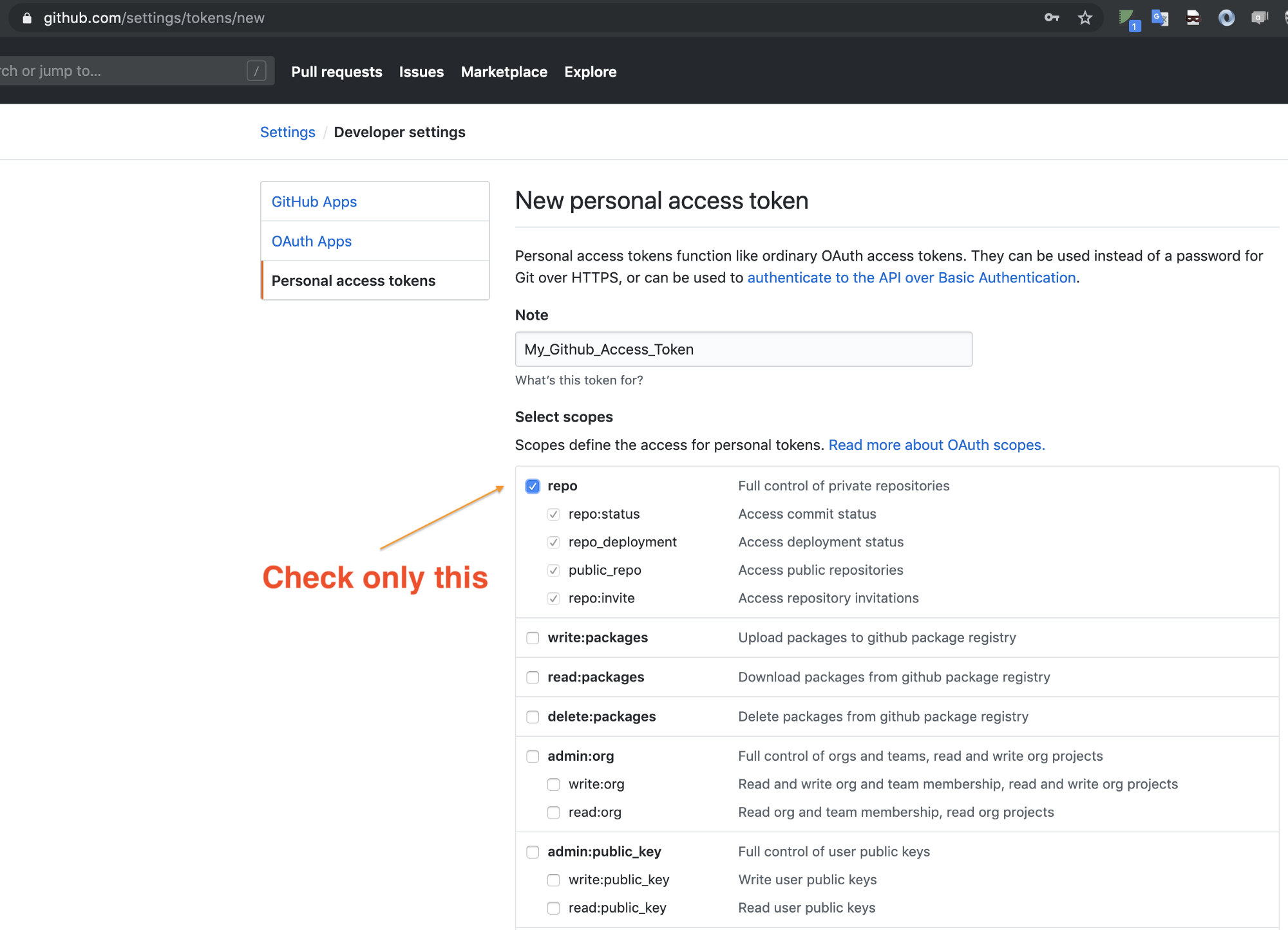 4. repo ์ ํ์ง ํด๋ฆญํ๊ณ , Github Access Token ์์ฑ
