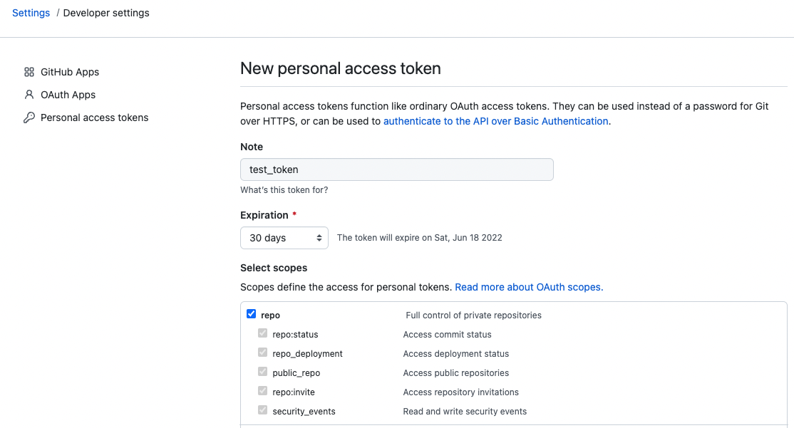 3. Developer Settings > Personal access tokens > Generate new token