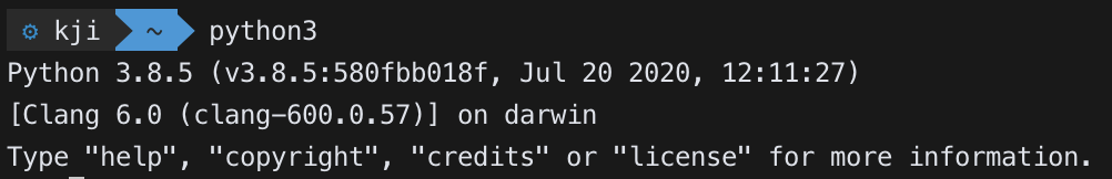 4. ๋ค์ ํฐ๋ฏธ๋๋ก๊ฐ์ ์ ์ค์น๋์๋์ง python3 ๋ฅผ ์ ๋ ฅํด ํ์ธ