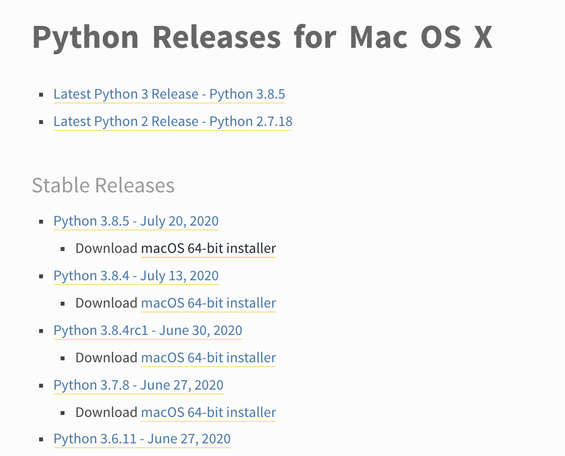 3. https://www.python.org/downloads/mac-osx/์ ๋ค์ด๊ฐ์ mac0S-64-bit installer ํด๋ฆญ!