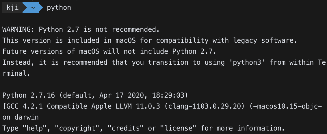 python 2.7์ ์ถ์ฒํ์ง ์๋๋ค๊ณ ํ๋ python3์ ์ค์นํ์