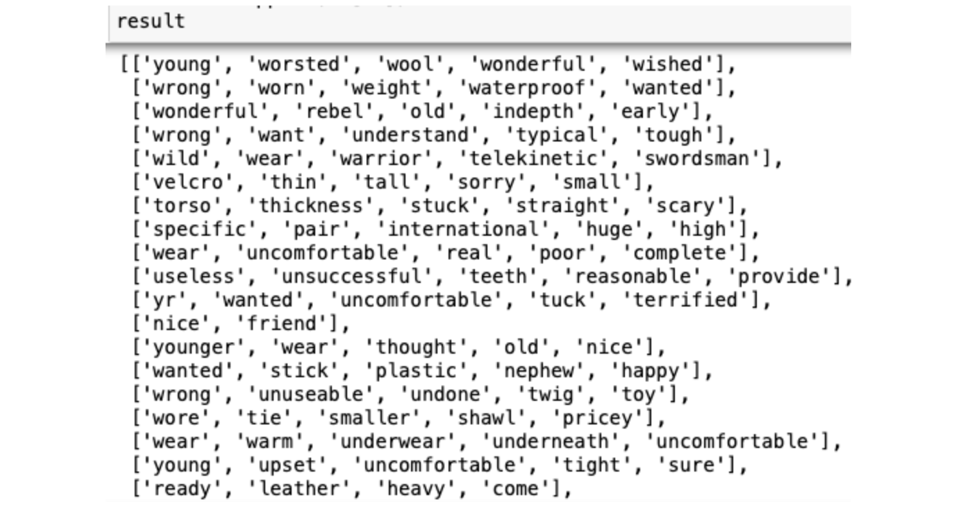 #4๋ฒ์งธ ์ปฌ๋ผ์ keywords๋ผ๋ ์ด๋ฆ์ผ๋ก ์์ฑ, result๋ผ๋ ๋ฆฌ์คํธ๋ฅผ ์๋ก์ด ๋ฐ์ดํฐ๋ก ๋ฃ๊ธฐ